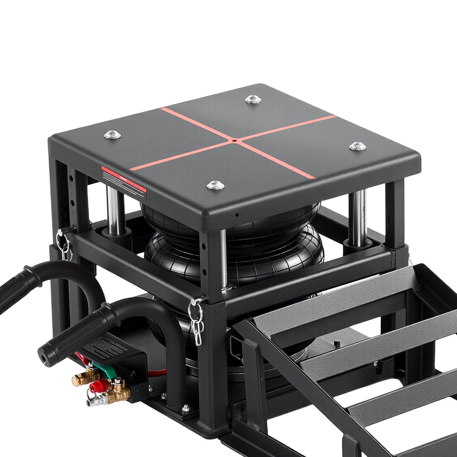 • Ideal for electric vehicles and sports cars: Avoid damage to low-clearance vehicles with this pneumatic car lift. It includes an extended ramp section that can be adjusted in various configurations, ensuring smooth access for cars of varying heights without risking contact with the undercarriage.